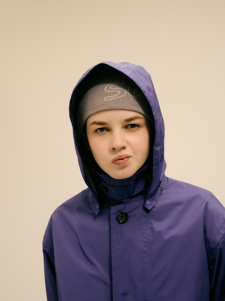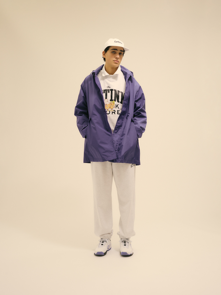 Skewed Beanie ¥9,350 / All Court Shell ¥46,200 / STN Bookstore Sweat Pants ¥19,800
