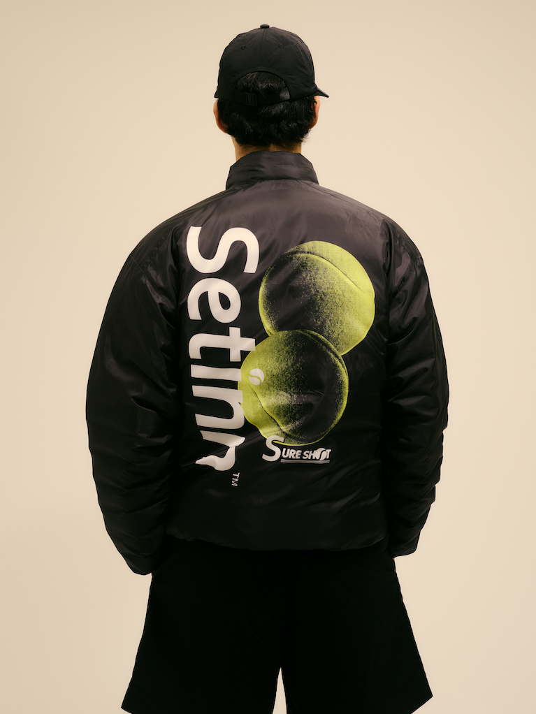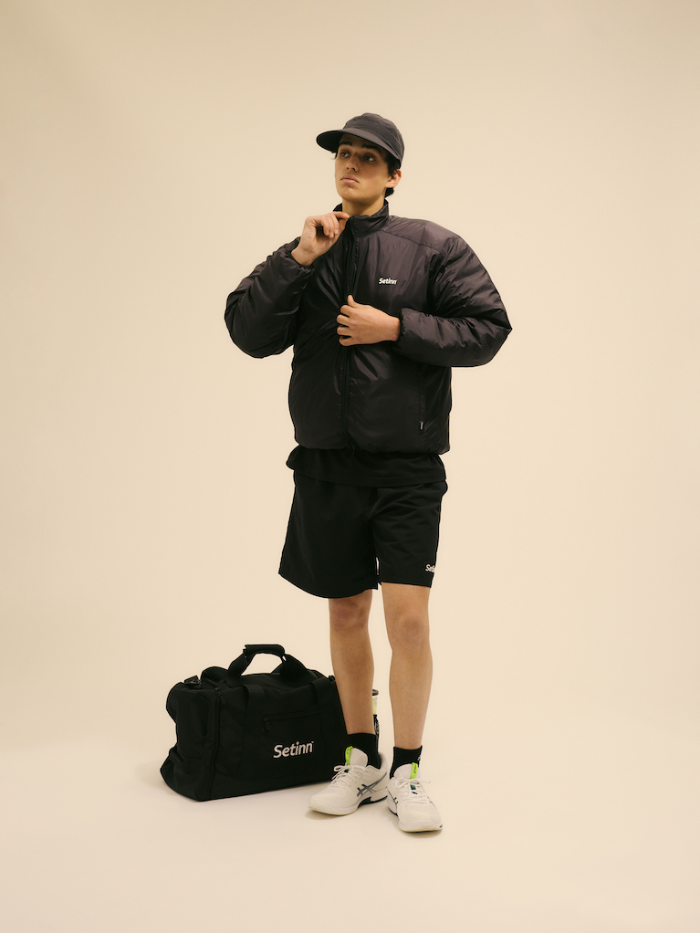 Reversible Warm Jacket ¥39,600 / Setinn Final Shorts ¥9,350 / Setinn Tournament Bag ¥20,900