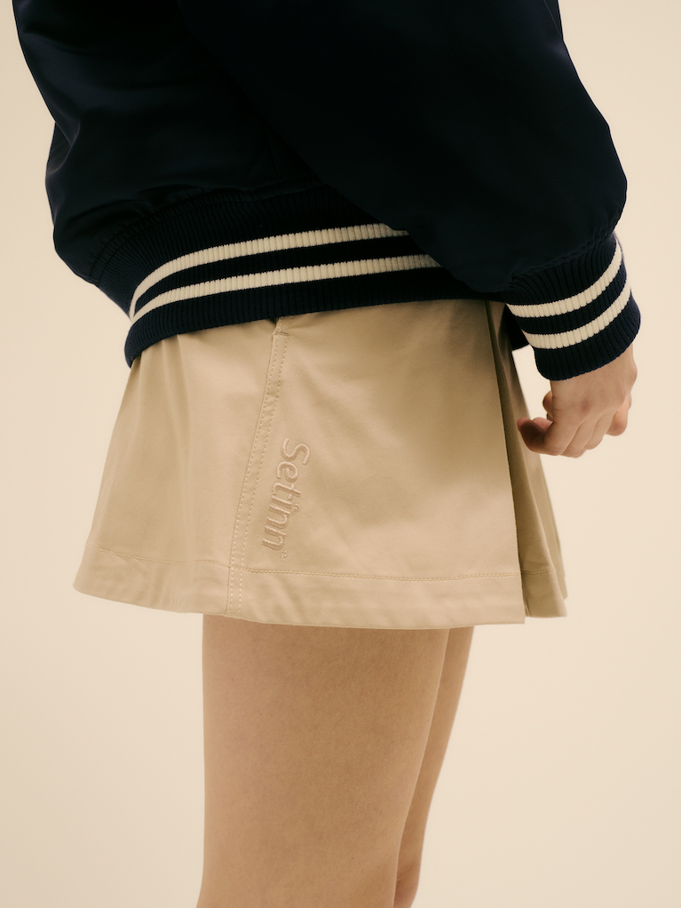 Game Jacket ¥19,250 / Circle Practice Shirt ¥7,480 / W’s Classic Skort ¥15,400 / Club Socks 2P ¥3,850 / Setinn Bandana ¥2,200 / Setinn Racket Backpack ¥22,000